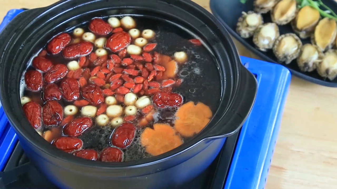 Bào ngư tiềm thanh mát mùa hè. Bào ngư giòn ngọt, cồi sò điệp trắng ngà thơm ngon, hạt sen bùi bùi, củ năng làm mát, giúp thanh nhiệt. Kết hợp hương vị của cà rốt, củ sen, nấm bào ngư khó chối từ.